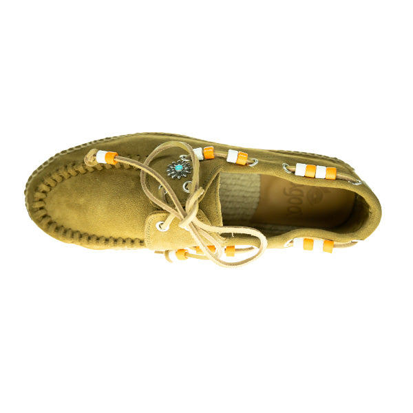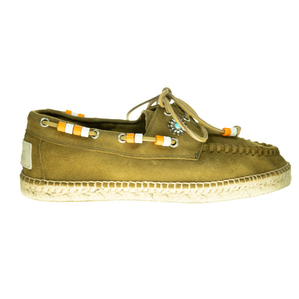 Loafer fra Lagoa i semsket skinn med dekorative frynser og perler over vrist.