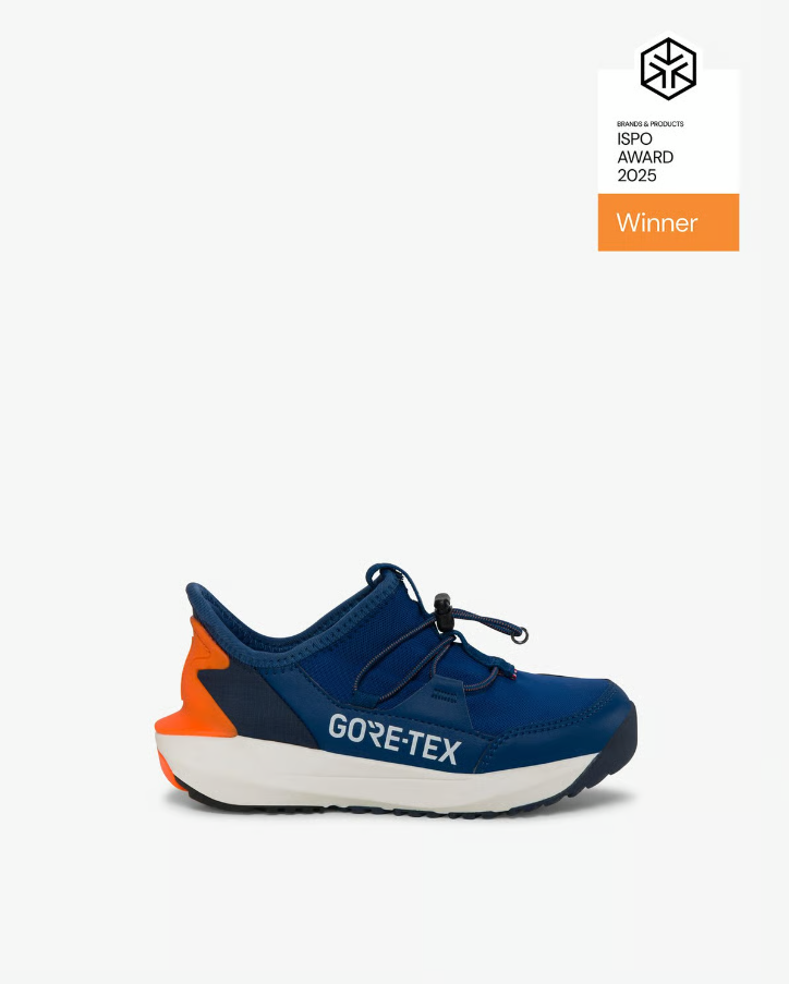 Vanntette sko med Gore-tex membran. Svært enkle å ta av og på med stiv hælkappe som ikke bretter seg inn og strikk over vrist. Tuppen i hardplast bak på hælen gjør det mulig å tråkke skoene av uten å slite på skoene. Hælen er innvendig polstret med skum for komfort. EVA mellomsåle gir god demping mens gummi yttersåle gir godt grep.