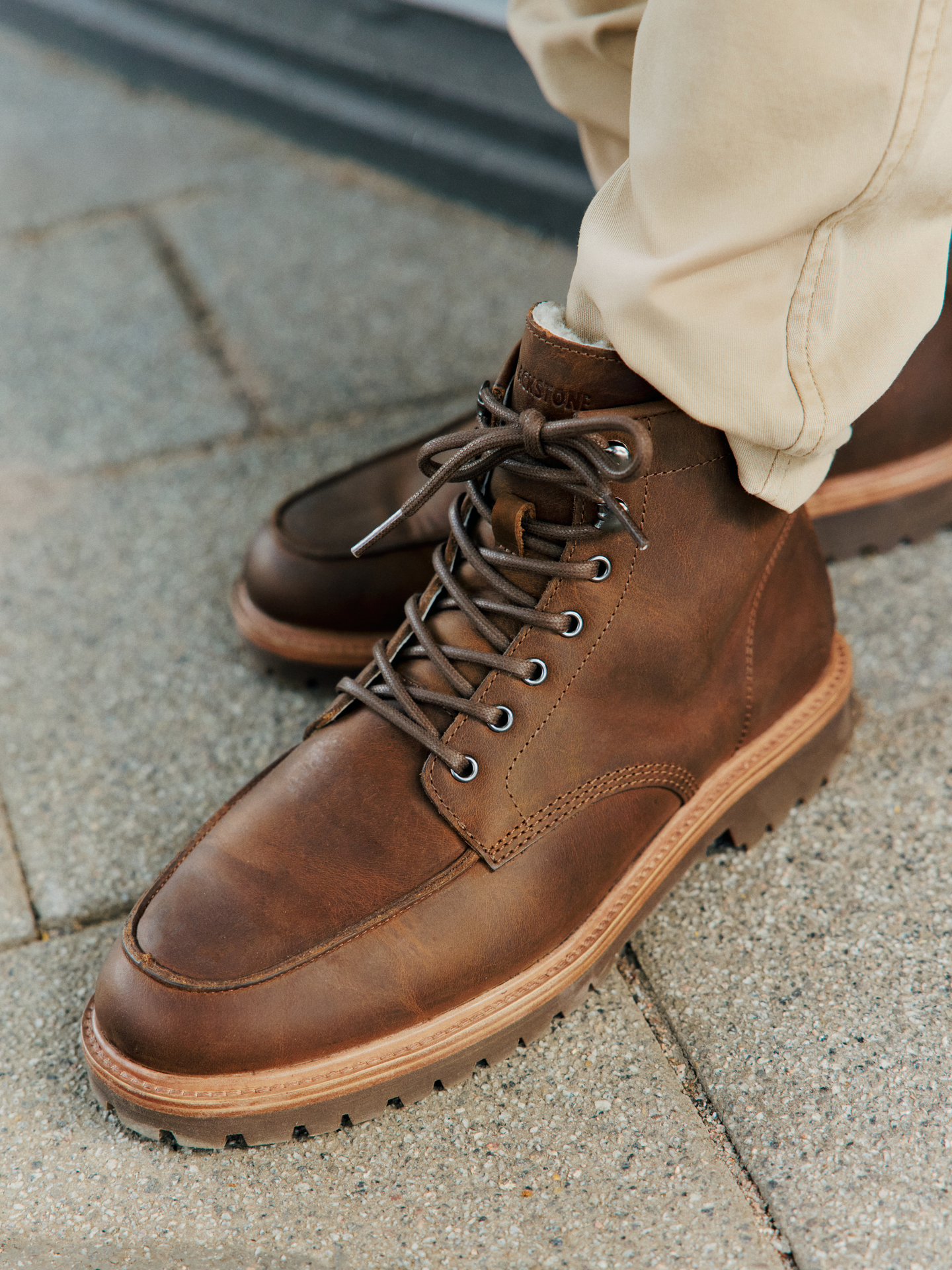 Vintersko fra blackstone i sort skinn. Fôret med saueskinn. Uttagbar innersåle og yttersåle i gummi.