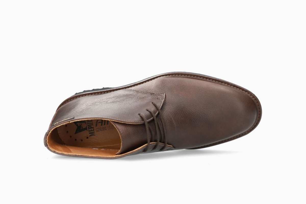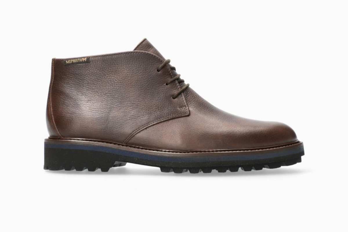 Ankelhøy snøresko i brunt skinn fra Mephisto. Fôret med skinn og uttagbar skummtrukket innersåle. Myk og lett yttersåle med godt grep.