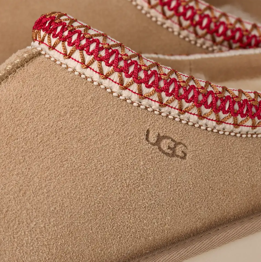 Bestselger fra UGG. Komfortabel slippers i semsket skinn med brodert kant. Har den klassiske slitesterke UGG yttersålen som kan brukes både innendørs og utendørs. Tasman II er fôret med saueskinn.