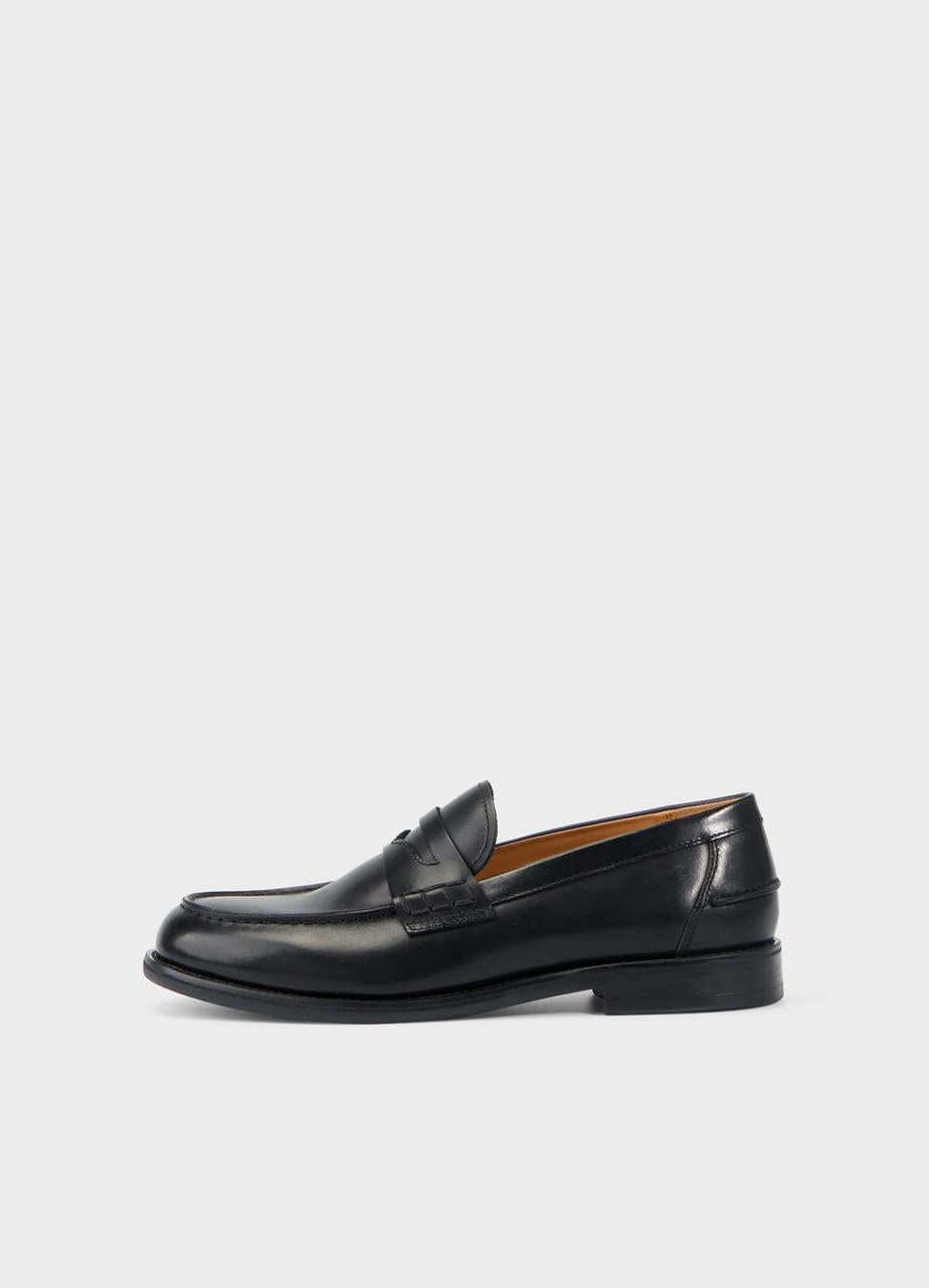 Penny Loafer i sort kuskinn. Fôret med skinn og innersåle i skinn. Yttersåle i gummi. Hælhøyde på 28 mm.