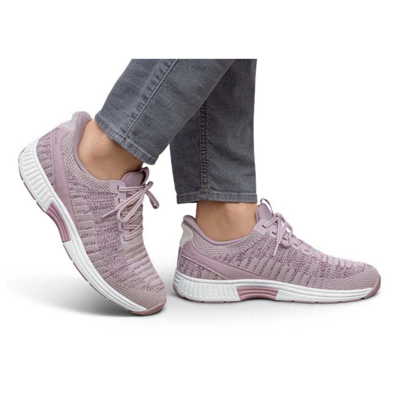 Kita fra Orthofeet i fargen Rose har snøring over vrist og slip on hælkappe slik at man kan tråkke rett inn. Sko fra OrthoFeet er utviklet av fotterapauter og biomekaniske ingeniører. Skoene har ekstra dybde som er godt for blandt annet føtter med hallux valgus eller hovene føtter. Anatomisk støtte under fotbuen forhindrer overpronasjon. Fotbuestøtten er justerbar med den inkluderte "arch boosteren". Sålene er sømfrie og mykt polstrede som forhindrer irritasjon. Yttersålen gir godt grep. Stor i størrelsen.