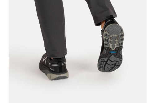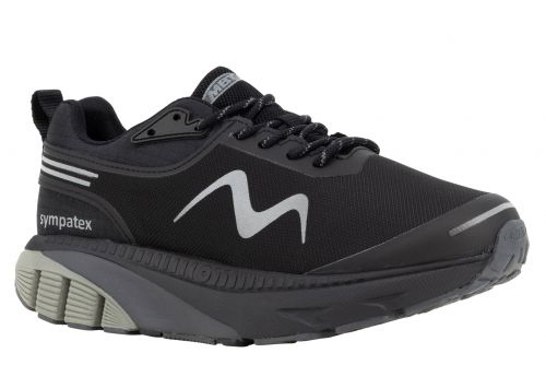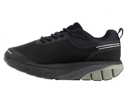 Denne MBT modellen har Pivot Strike såle, som er MBTs løpesåle nivå 2 "performance" (av 3 nivåer). Modellen er vanntett med Symaptex membran. Pivot Strike sålen har midtfots støtte. Skoene har uttagbar innersåle, og yttersåle i EVA.