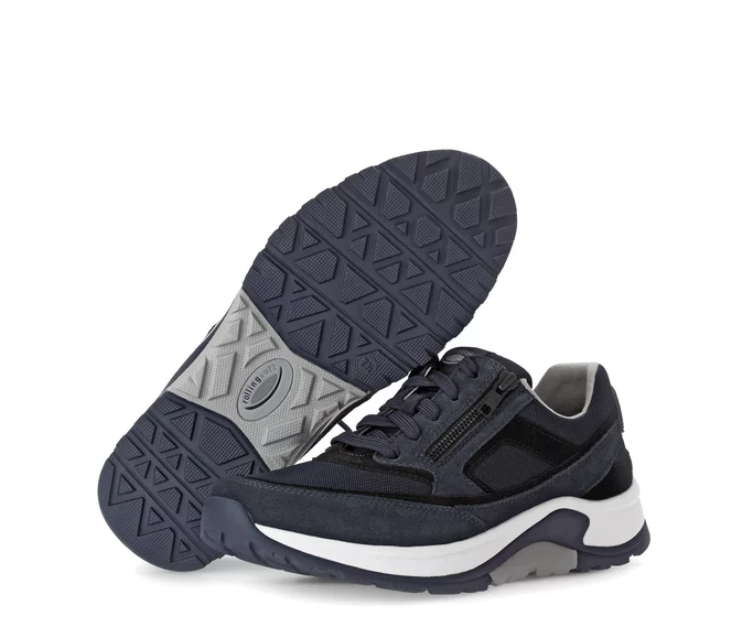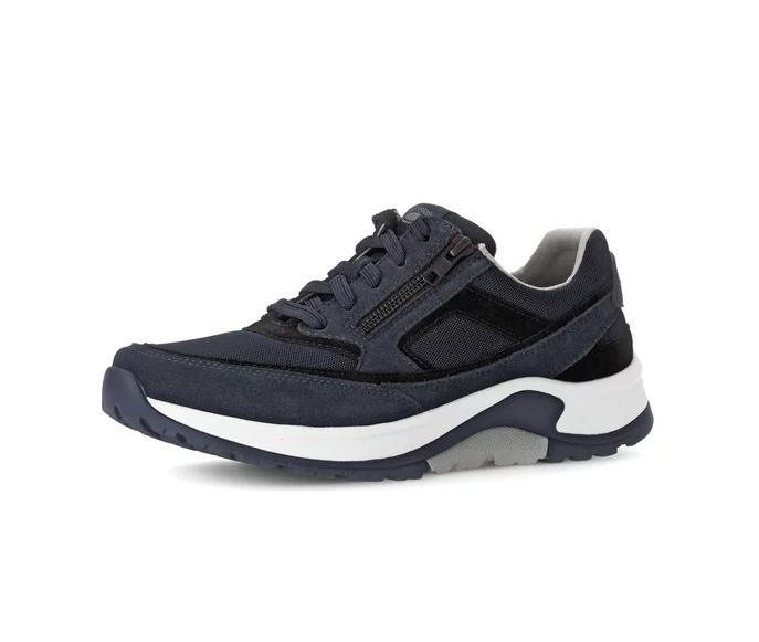 Sneakers fra Rolling Soft i skinn og tekstil. Snøring over vrist og glidelås på begge sider. Uttagbar innersåle.