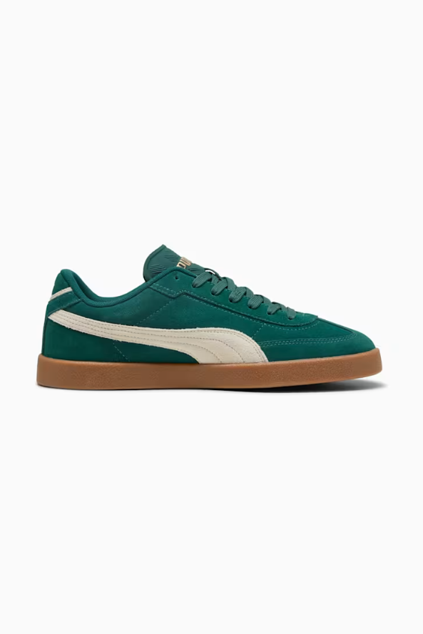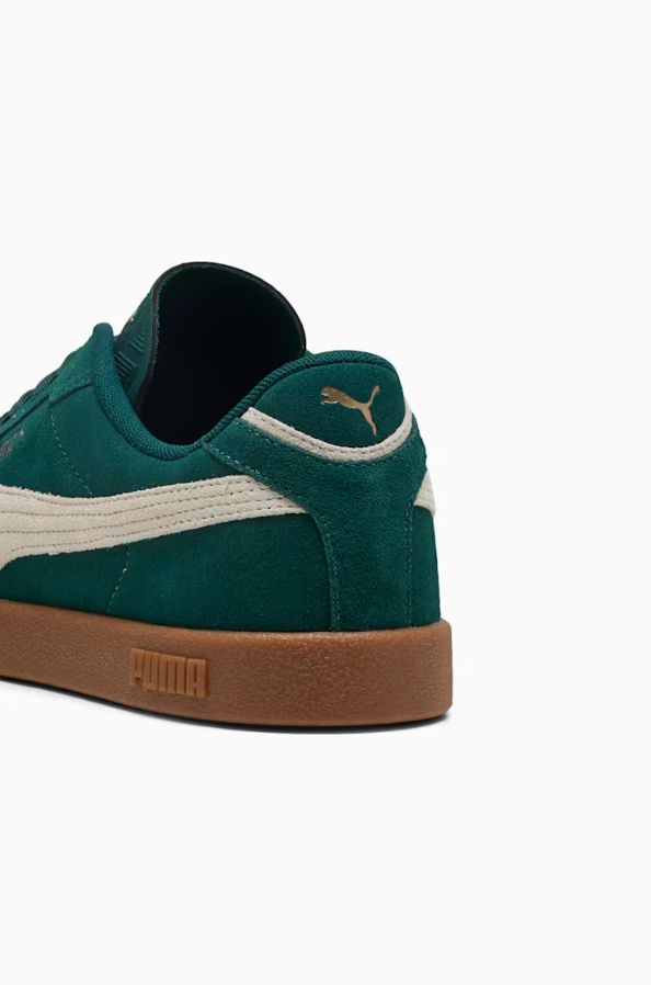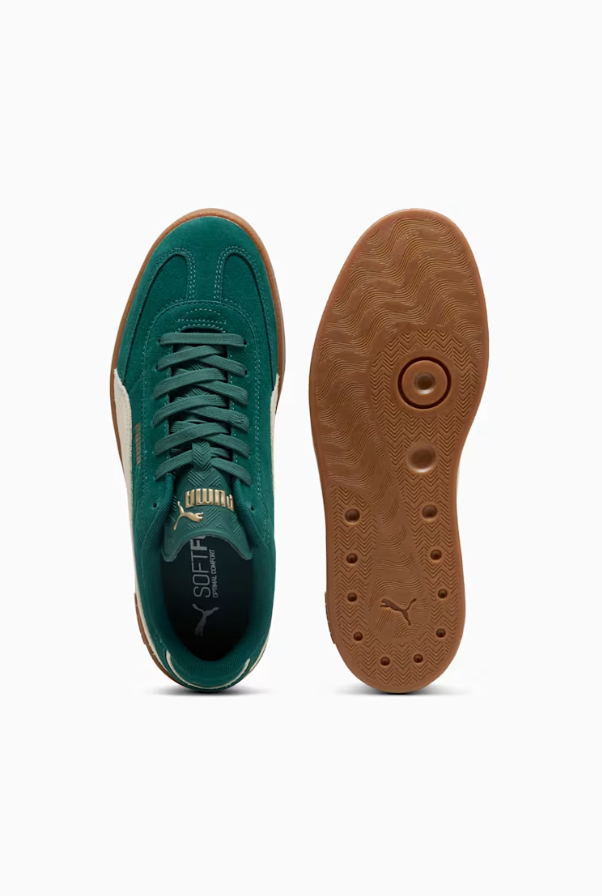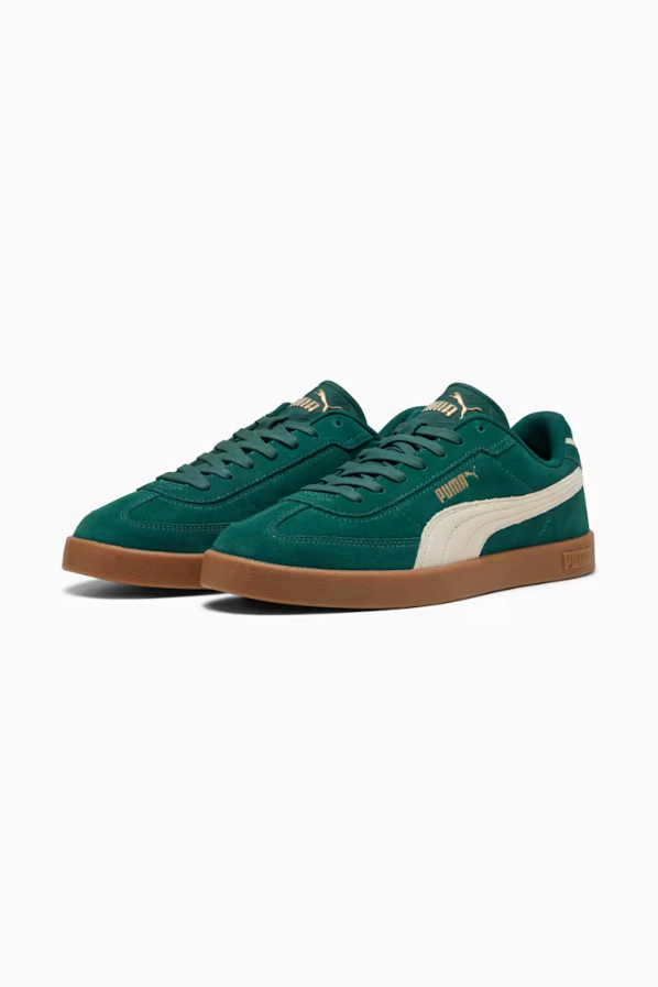 Grønn og hvit sneaker fra Puma i modellen Club II Era i semsket skinn. Designet er inspirert av retro fotballsko, med et moderne preg. Den uttagbare innersålen i soft foam gjør skoene ekstra komfortable. Yttersåle i gummi.