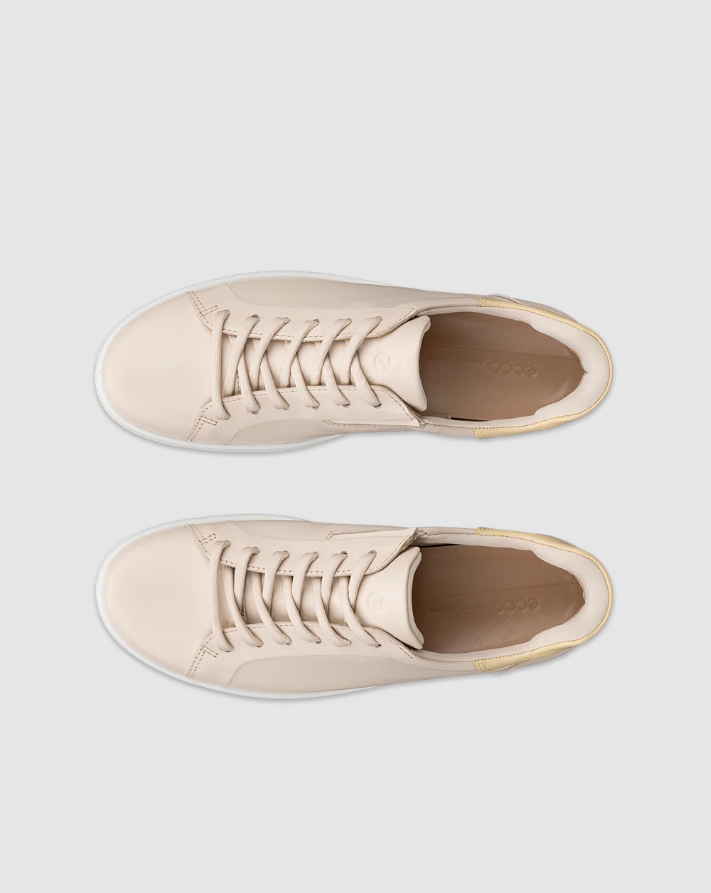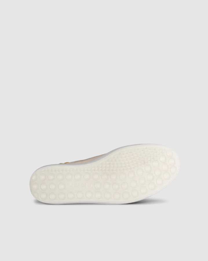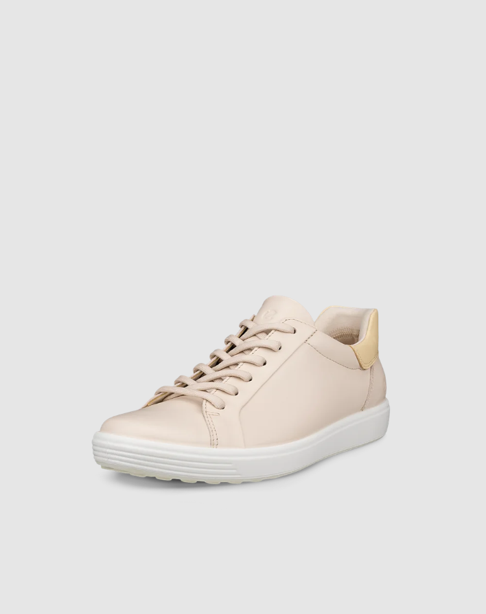 Sneakers fra Ecco i modellen soft 7 i beige skinn. med snøring over vrist samt strikk i siden. Skinntrukket innleggsåle, kan tas ut for ekstra bredde. ECCO FLUIDFORM™ gir myke, fleksible og naturlige bevegelser med en naturlig støttende anatomisk passform.