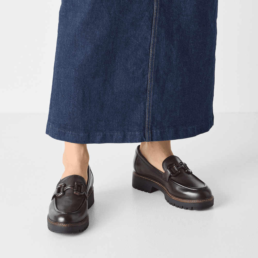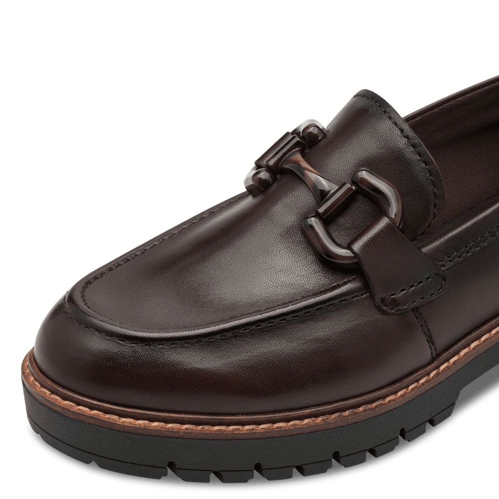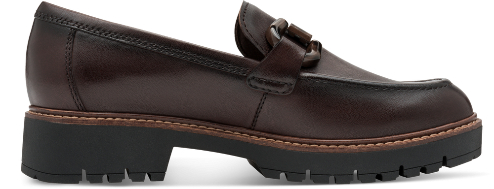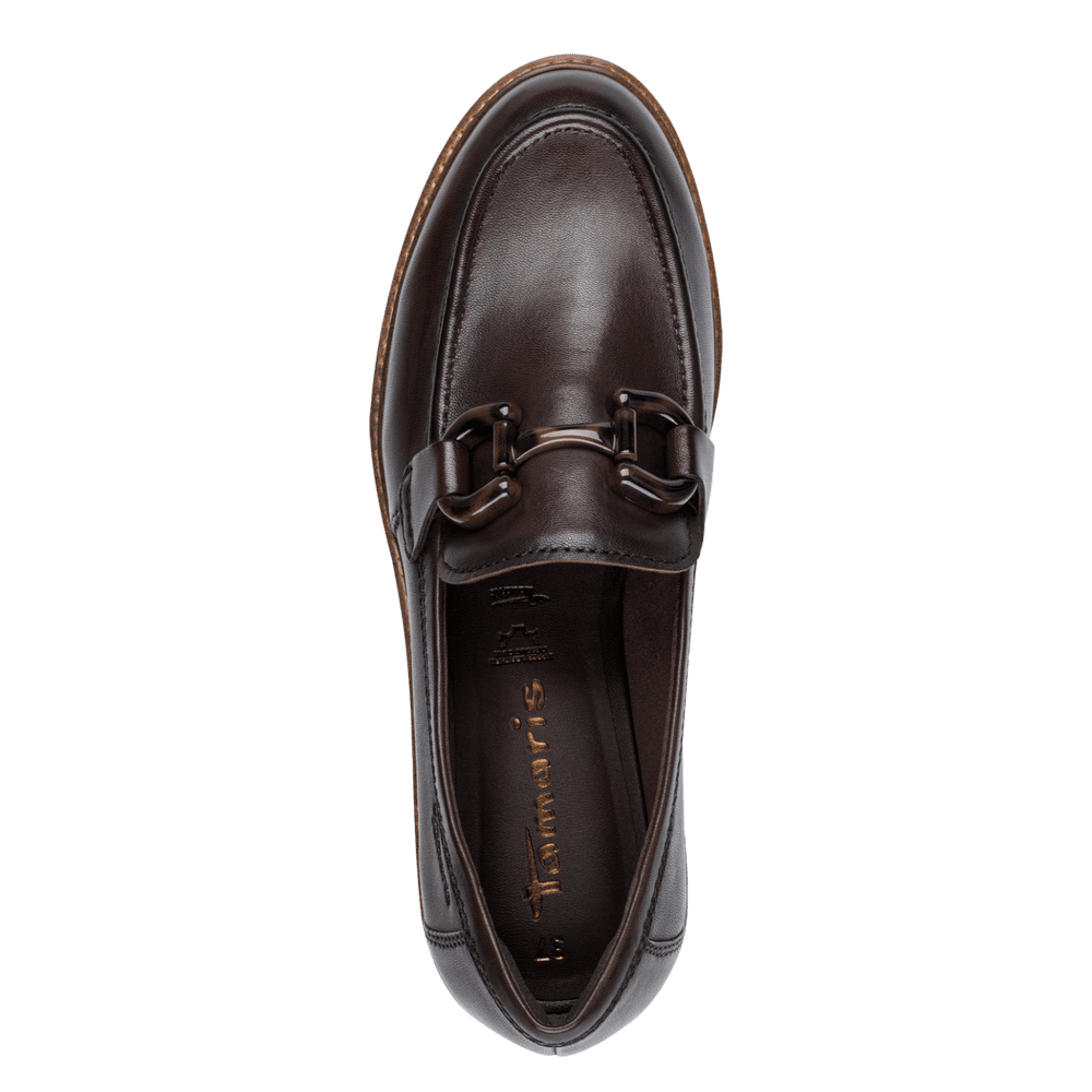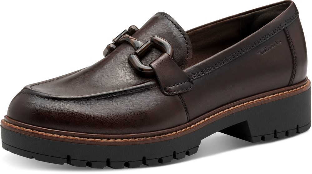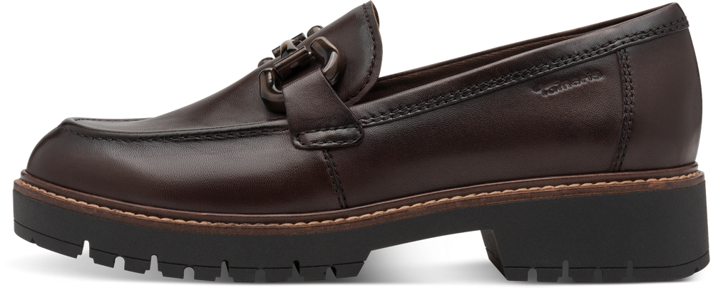 Loafers fra Tamaris i semsket skinn med rund skotupp, pynt over vrist og 2,5 cm lav hæl. Dekksåle i lær som formes etter foten.