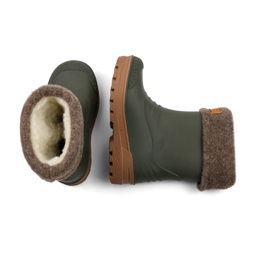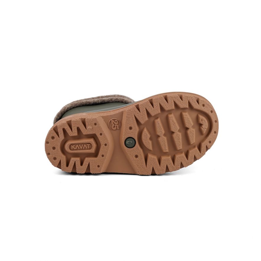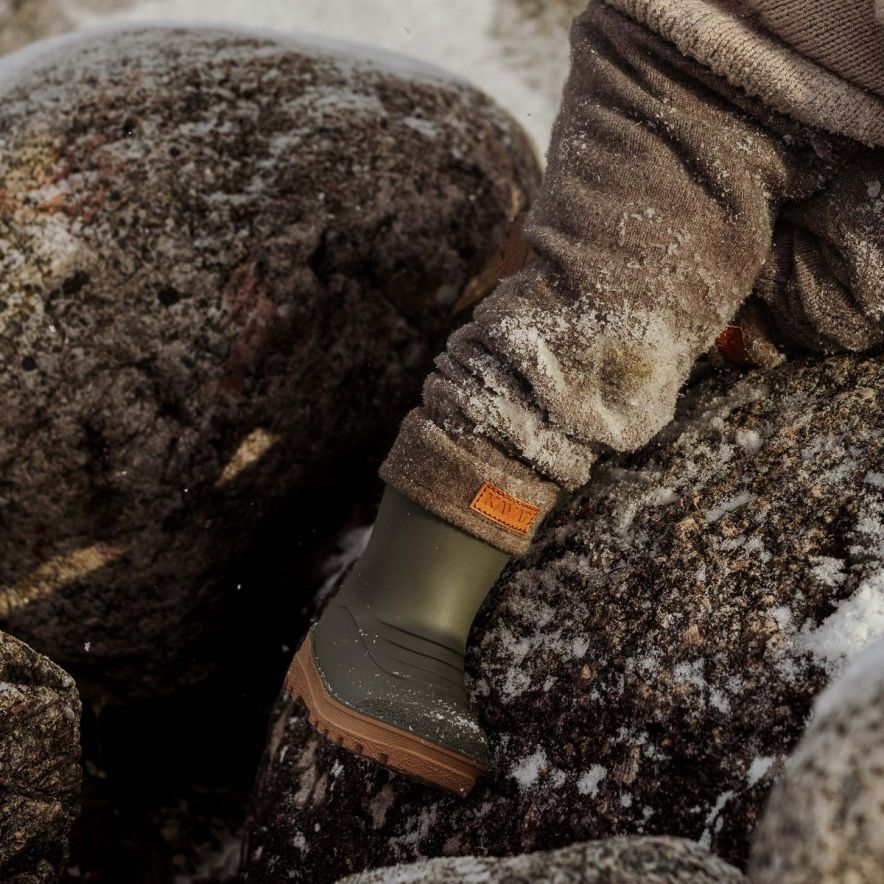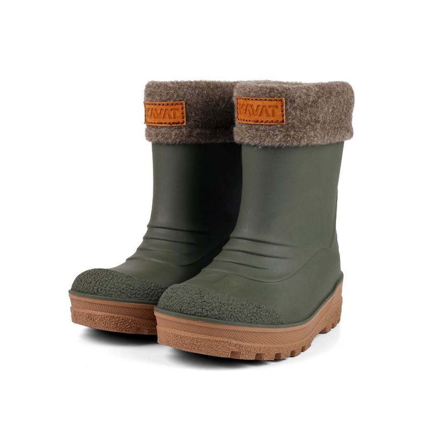 Gummistøvler fra Kavat med uttakbart for i ull fra norsk sau. Disse kan brukes med ullforet på våte kjølige dager og uten når det er varmere. Uten ullfor blir støvelen ca 17 mm lenger. Dette gjør at de kan passe fint med ullfor på høsten og uten til våren. Brukes den uten ullforet bør det legges til en innleggsåle. Støvlene er laget av resirkulerbar SEBS gummi og er helt uten PVC. Vaskbar i vaskemaskin på 30 grader. Det anbefales å ha 15-20 mm å gå på i gummistøvler. Det er viktig at foten måles stående da kroppsvekten gjør foten litt lengere.