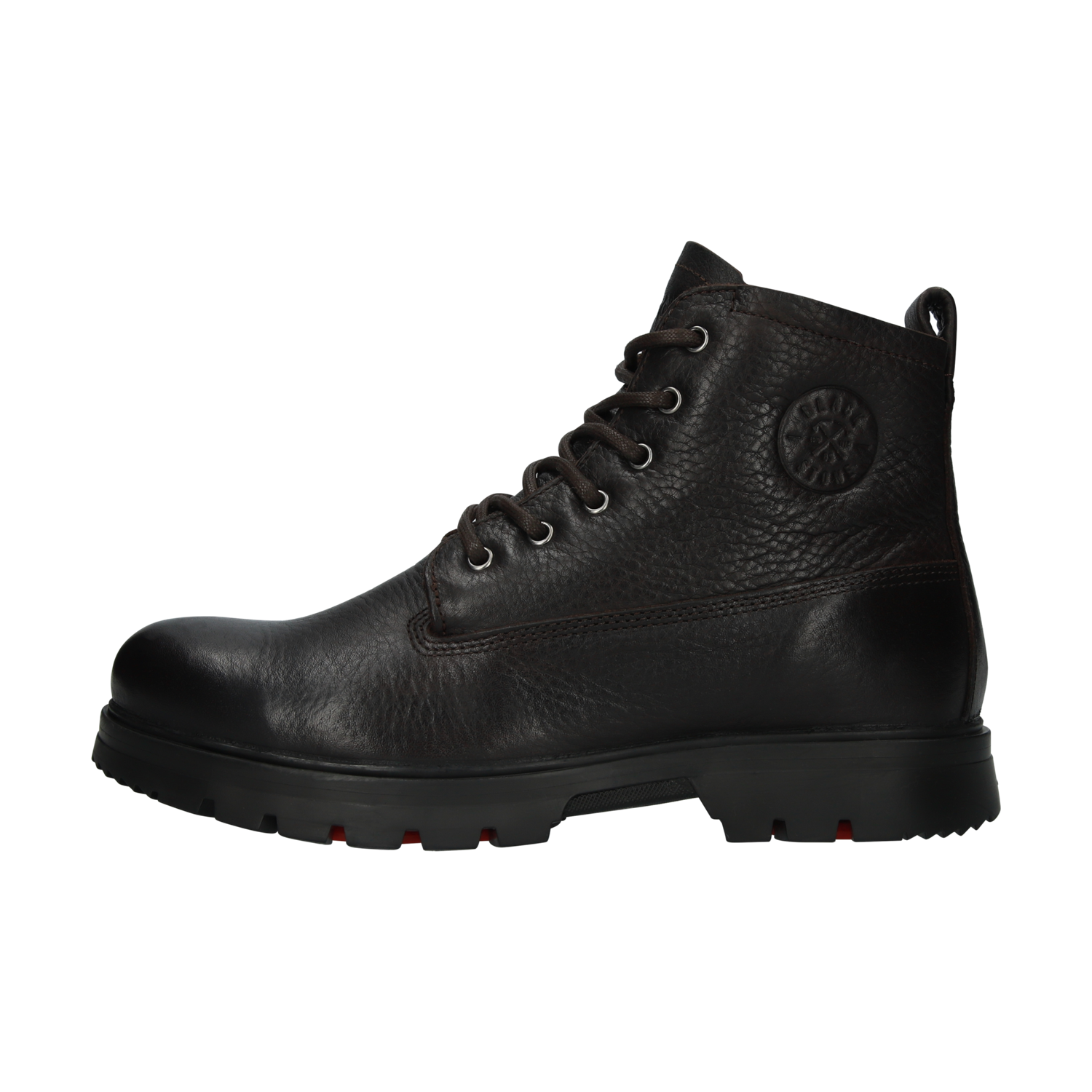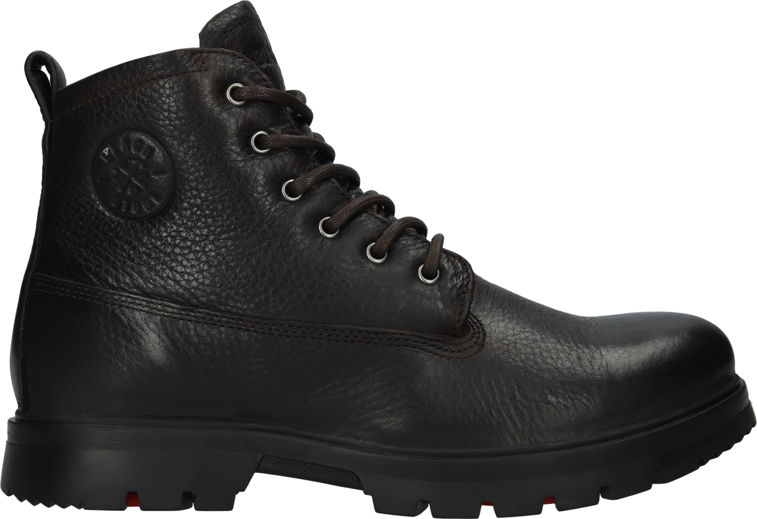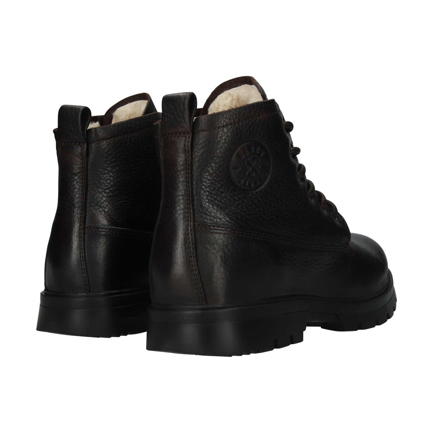 Vintersko fra blackstone i mørkebrunt skinn. Fôret med saueskinn. Uttagbar innersåle og yttersåle i gummi. Utfellbare AL.PI. brodder.