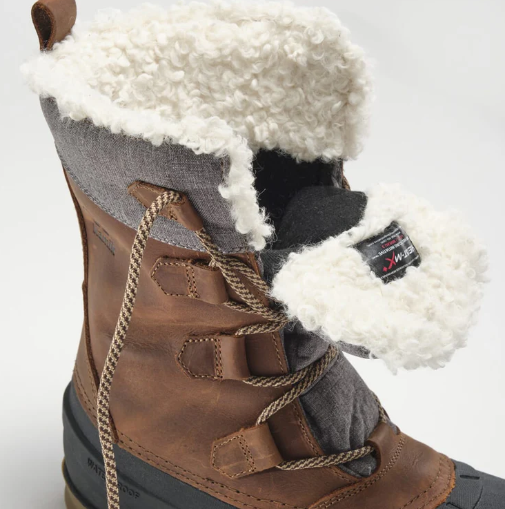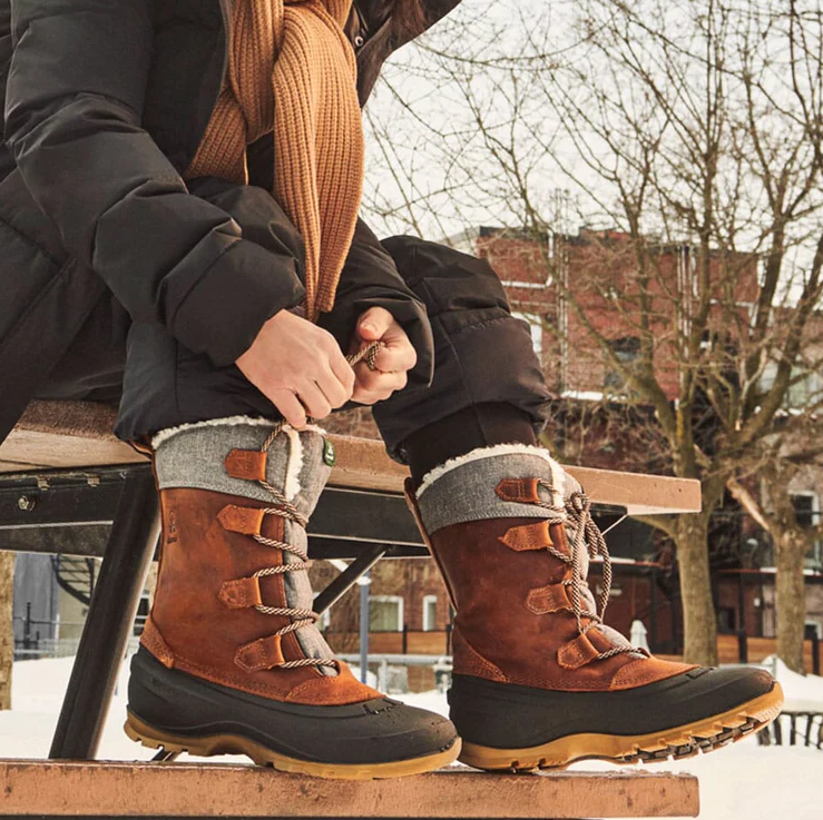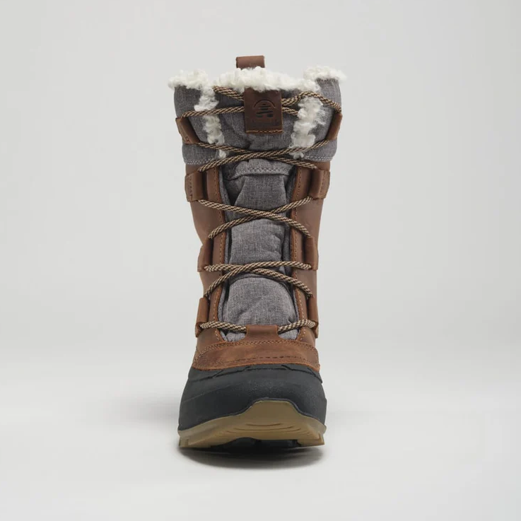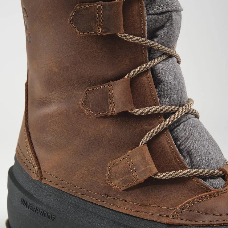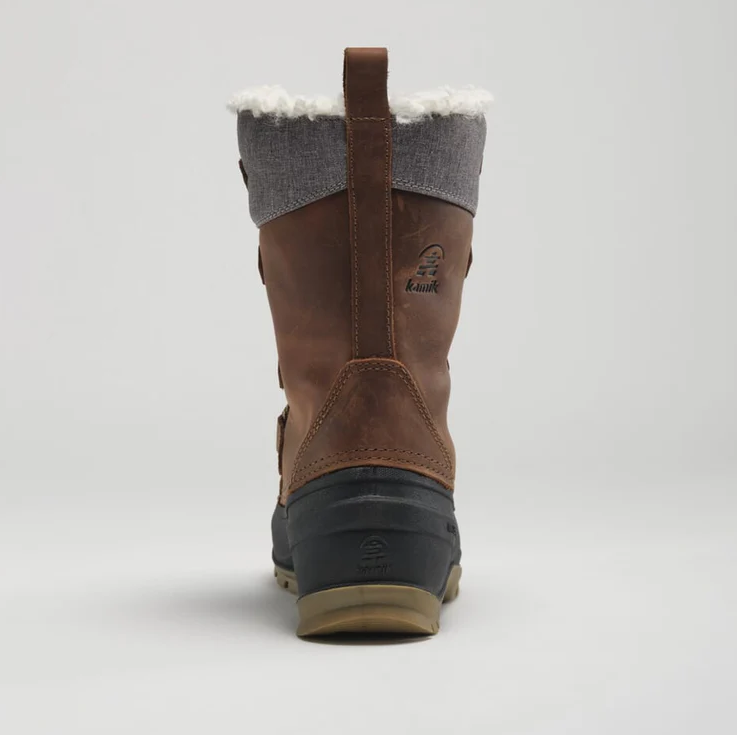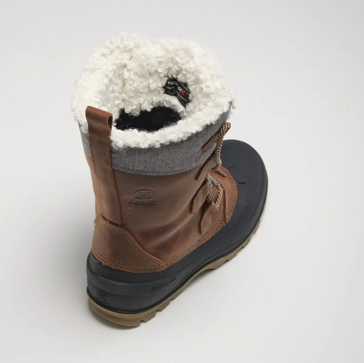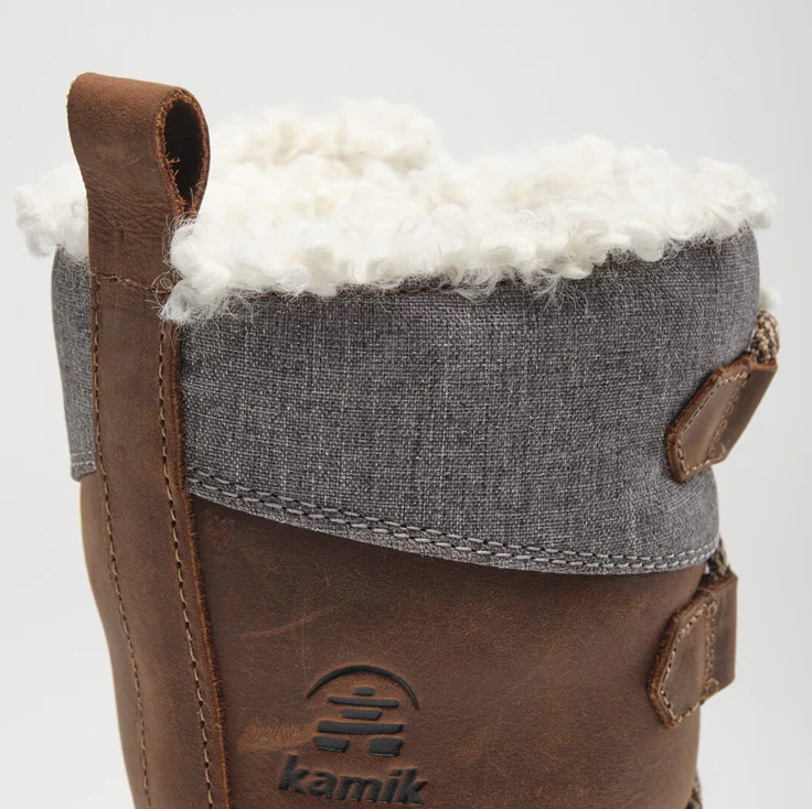 Varme vintersko fra Kamik i vanntett nylon og skinn. Skoene har et isolerende for som gjør at de holder varmen helt ned til -40 °C. Myk uttagbar innersåle i EVA som gir demping. Yttersåle i syntetisk gummi.