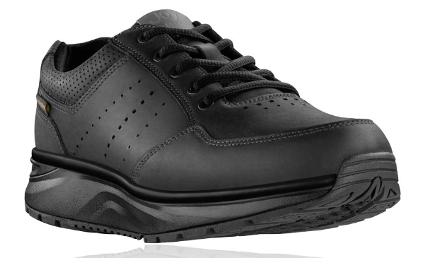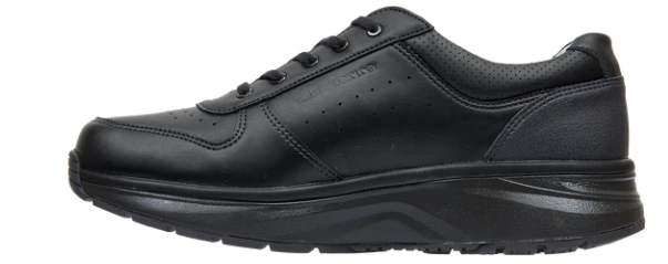 Sneaker fra merket Joya i sort skinn, utrolig behagelig sko man kan gå lenge i uten å få vondt i beina, fôret med mesh tekstil som puster, myk polstret dynamisk innersåle med innebygd ventilasjonhull, myk og elastisk mellomsåle, yttersåle i gummi med slip resistant som gir et godt grep.