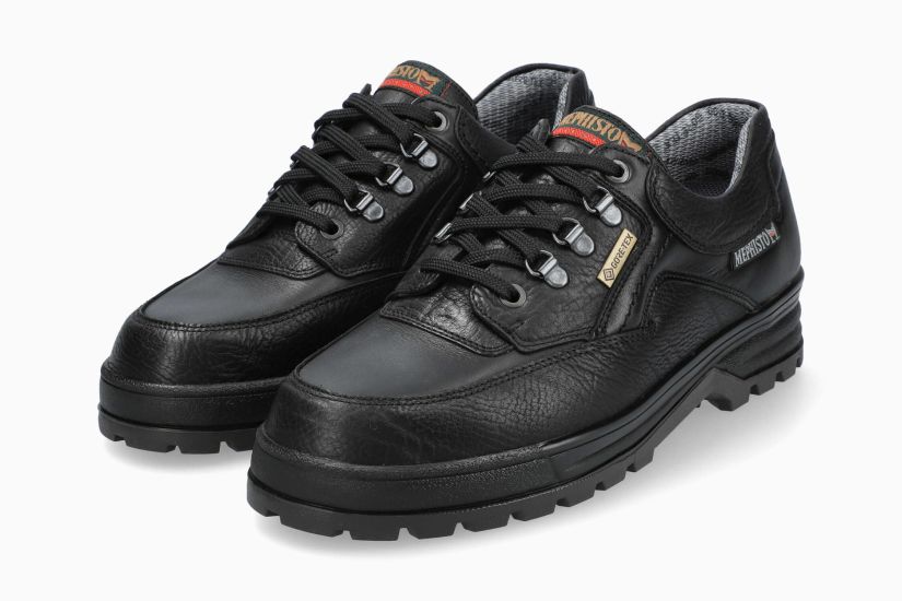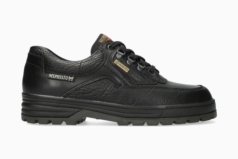 Sneakers fra Mephisto i modellen Barracuda i sort glatt skinn, har Gore-Tex membran som gjør den vannavvisende samtidig som den puster. Har snøring over vrist, uttakbar innersåle, kraftig yttersåle som gir god demping til hele foten.