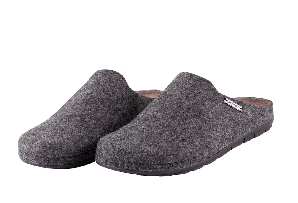 Tøfler fra det svenske merket Shepherd i modellen Samuel i ull, myk polstret dekksåle, yttersåle i gummi som gir et godt grep.