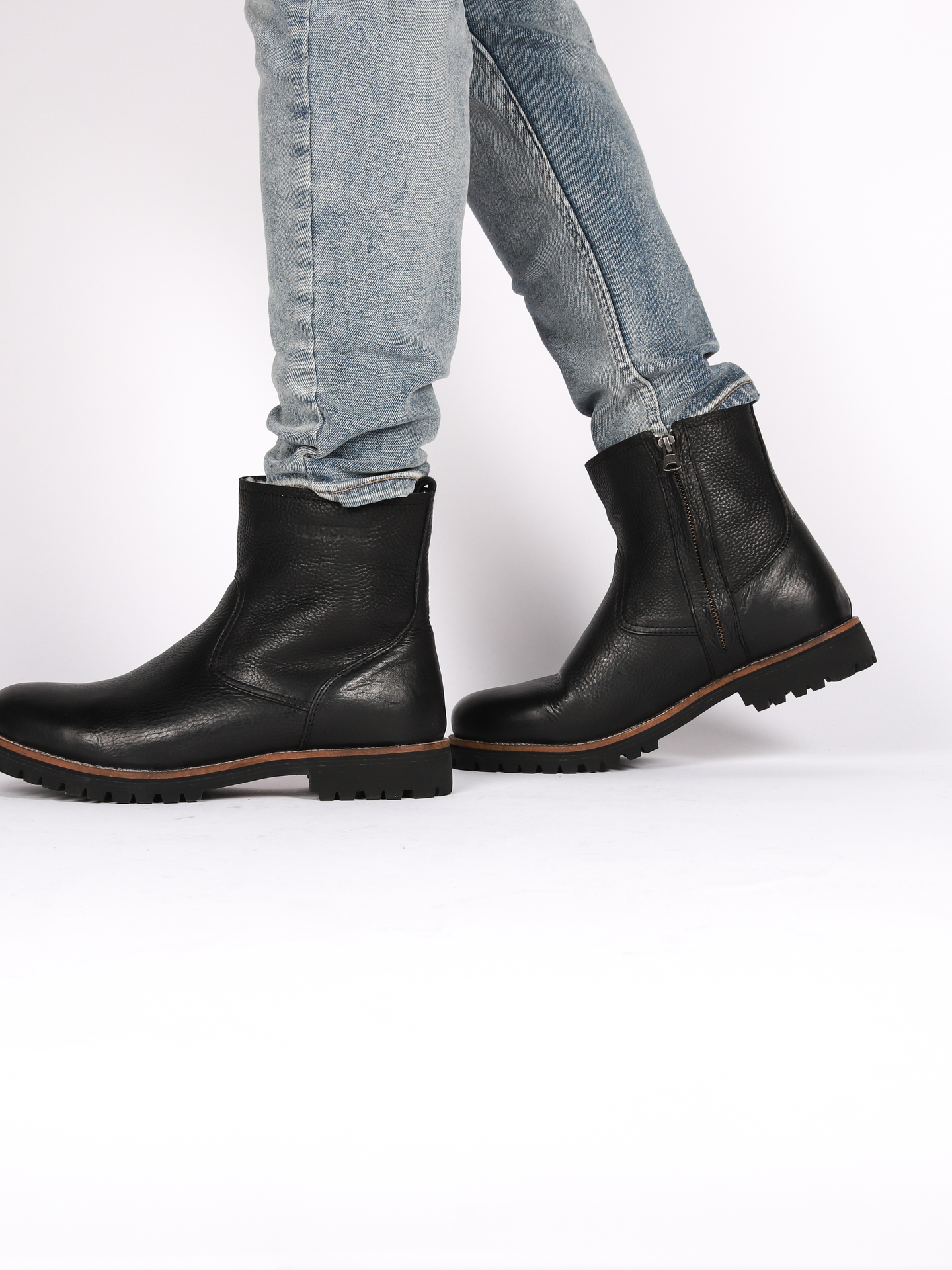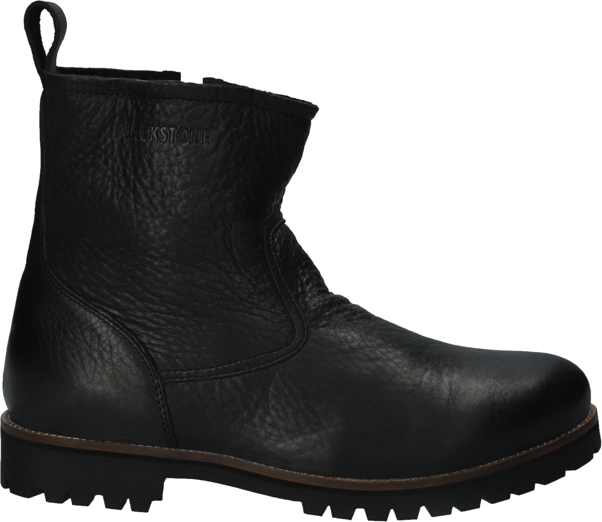 Vinterboot fra blackstone i sort glatt skinn, tykt foret med sueskinn. Yttersåle i gummi som gir demping og godt grep. Glidelås på innersiden og hempe bak. Innersålen er uttagbar.